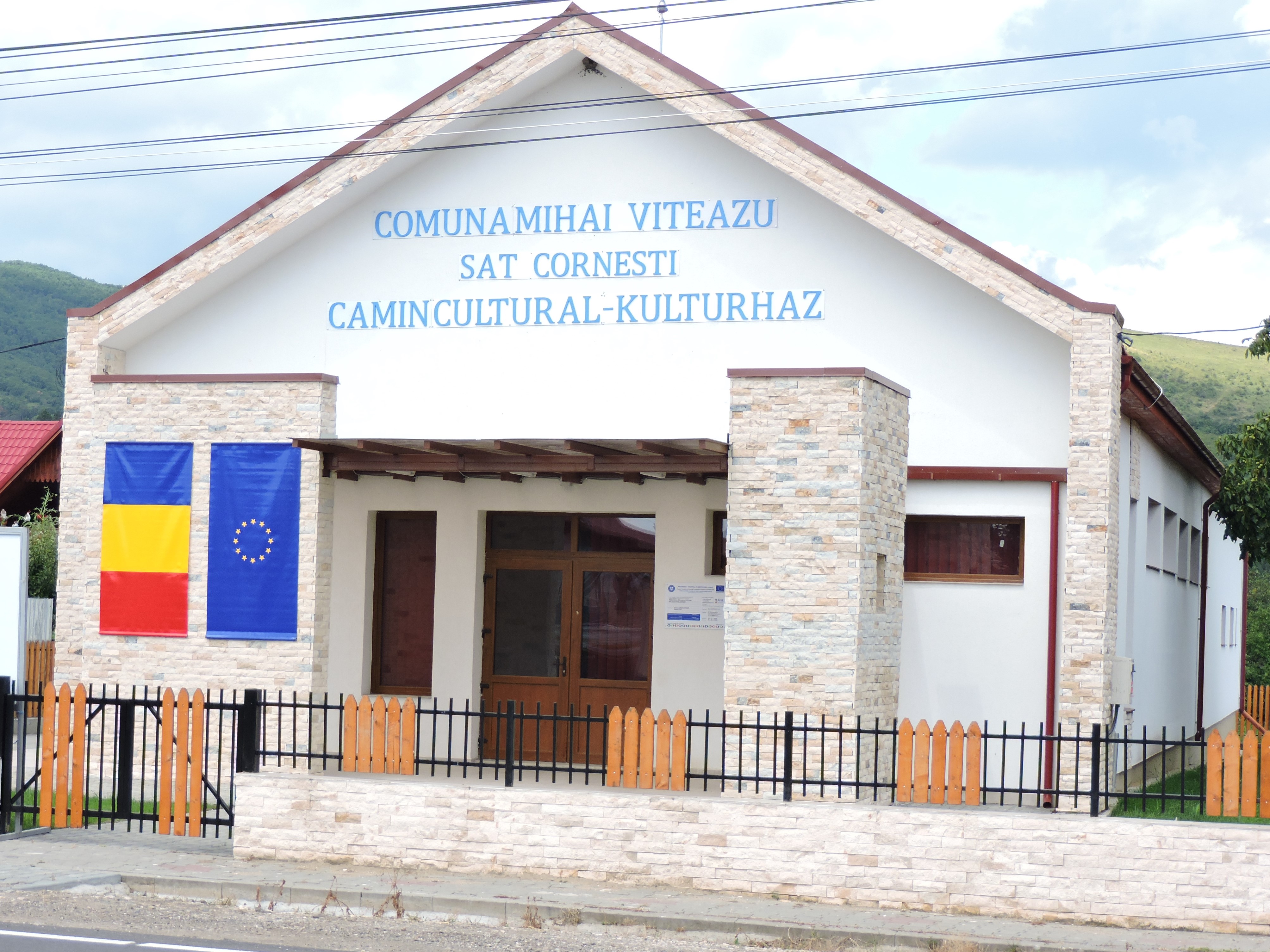 COMUNA MIHAI VITEAZU, cu sediul în localitatea Mihai Viteazu nr. 1014, judeţul Cluj, cod poştal 407405, a derulat începând cu data de 01.11.2016, proiectul „Reabilitarea căminului cultural din localitatea Cornești”, finanţat prin Fondul European Agricol de Dezvoltare Rurală, submăsura 7.6. „Investiţii asociate cu protejarea patrimoniului cultural” a PNDR 2014 – 2020, în baza contractului de finanţare nr. C0760CN00031561300094 încheiat cu Agenţia pentru Finanţarea Investiţiilor Rurale.