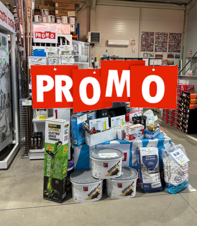 Clienții pot beneficia de oferte speciale la o gamă variată de materiale și accesorii: adezivi, vopsele, gleturi, mortare, plăci ceramice, sisteme pentru finisaje, dar și multe alte produse esențiale pentru casă și șantier. Promoțiile sunt valabile în limita stocului disponibil, iar reducerile sunt gândite pentru a veni în sprijinul tuturor – de la meseriași profesioniști, până la cei care își amenajează locuința pe cont propriu.