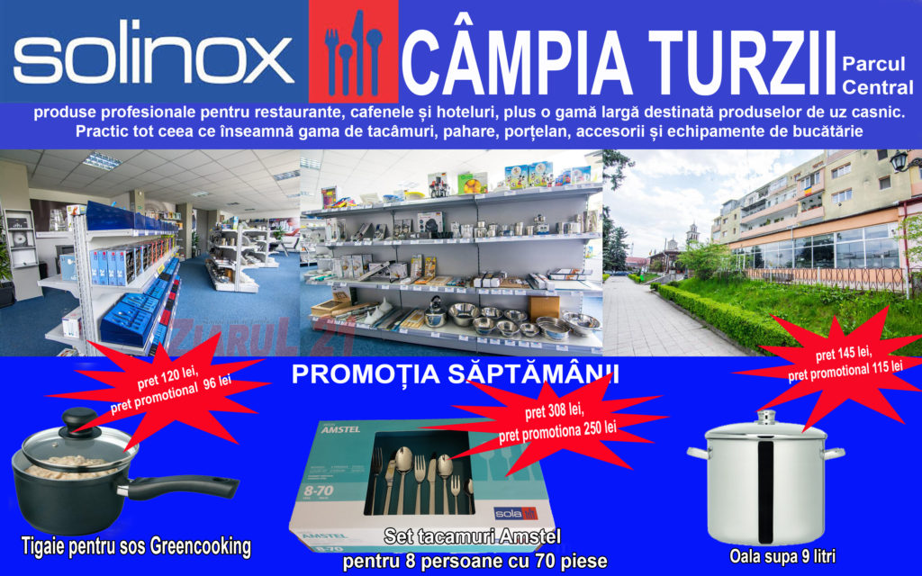 Primul show-room specializat pe produse din domeniul HoReCa din zona Turda-Câmpia Turzii, SOLINOX Câmpia Turzii își prezintă oferta săptămânii.