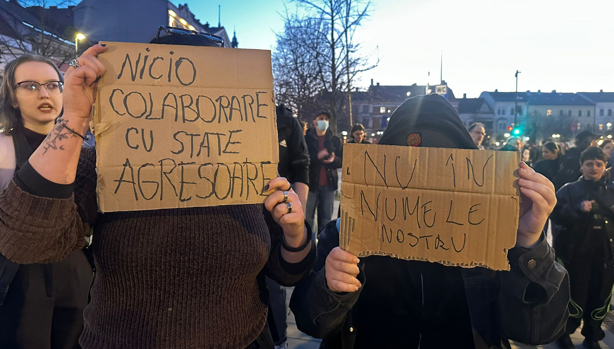Printre mesajele anunțate se numără: „Nicio colaborare cu state agresoare!” și „Educație, cercetare, nu bugete militare!”