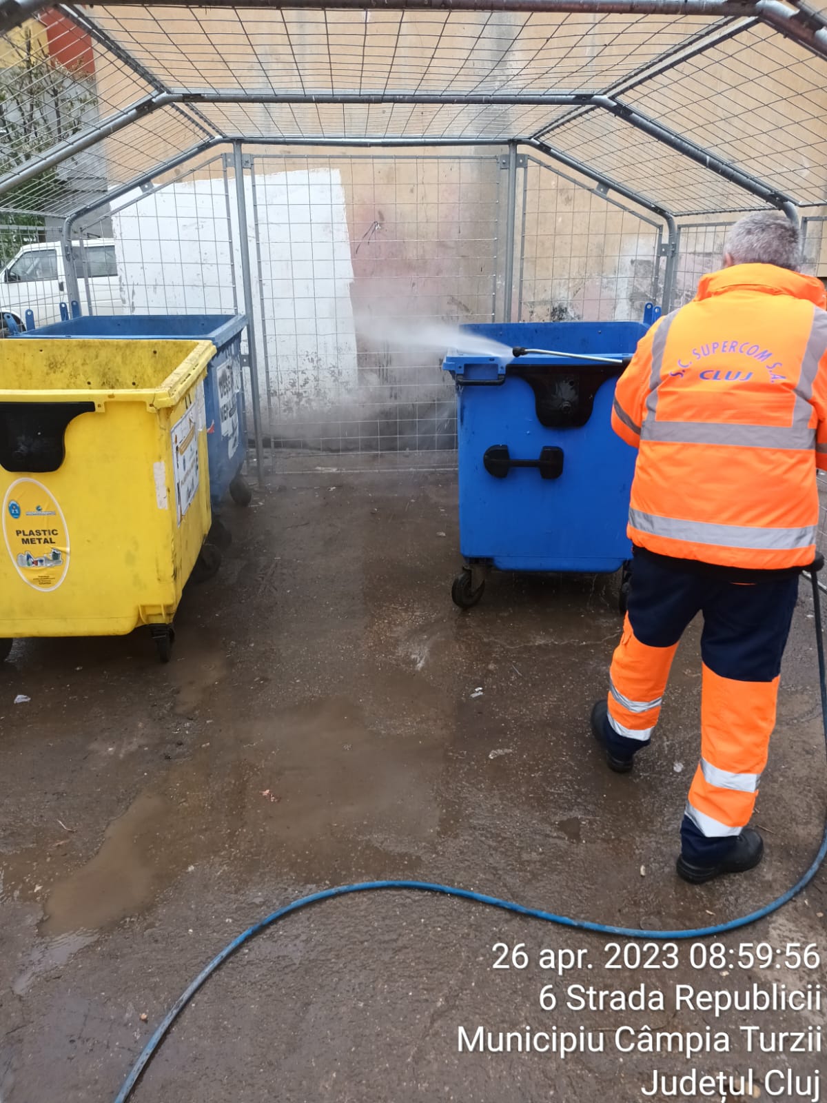 Operatorul județean de salubritate, SUPERCOM SA, desfășoară o acțiune de igienizare și dezinfectare a pubelelor din Municipiul Câmpia Turzii.