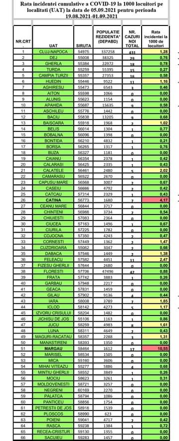 Actualitate Rata incidenței Covid 19 pe localități ziarul21.ro 5 septembrie 2021, 10:55 Share Tweet Share Share Email Comments Related Items:campia turzii, cluj, Coronavirus, Featured, Rata incidenței Covid 19 pe localități, turda, ziarul 21 Share Tweet Share Share Email Recommended for you Noii polițiști ai IPJ Cluj, instruiți în comunicarea cu cetățenii: profesionalismul începe cu dialogul BĂRBAT URMĂRIT NAȚIONAL DEPISTAT DE POLIȚIȘTI ÎN CLUJ Se începe sterilizarea și microciparea câinilor din comuna Mihai Viteazu Click to comment Leave a Reply Anulează răspunsulComentariile trebuie să respecte regulile de utilizare.Adresa ta de email nu va fi publicată. Câmpurile necesare sunt marcate cu *Comentariu * Nume * Email * Δ Acest site folosește Akismet pentru a reduce spamul. Află cum sunt procesate datele comentariilor tale.