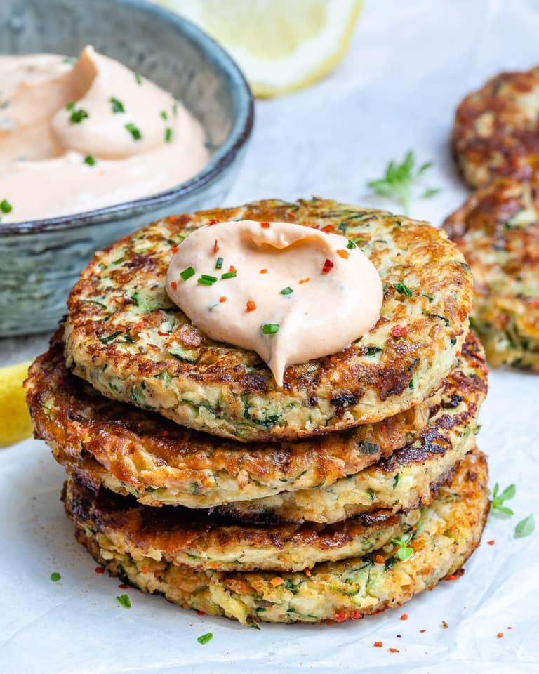 Luati o lingura din amestecul de zucchini, puneti-o in tigaie, apoi modelati-o in forma de chifteluta. Gatiti cam 3 chiftele deodata, prajindu-le timp de 2-4 minute pe fiecare parte (sau pana cand devin maronii-aurii). In timp ce se prajesc, mai lucrati la forma lor, deoarece au tendinta de a se imprastia putin. Cu o spatula de silicon, apasati usor marginile si dati chiftelelor o forma rotunda.