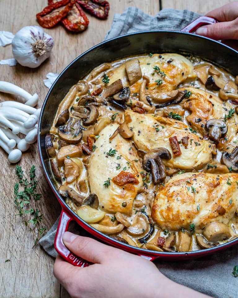 Pui cu ciuperci și smântână