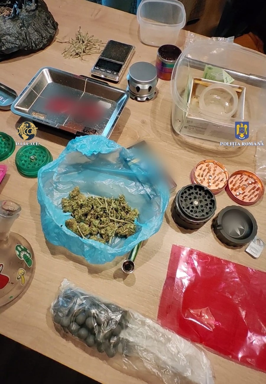 De asemenea, au fost descoperiți și ridicați peste 11.000 de lei, un cântar de mare precizie, peste 25 de bancnote rulate, farfurii și tăvi cu urme de substanță, precum și alte mijloace de probă.
