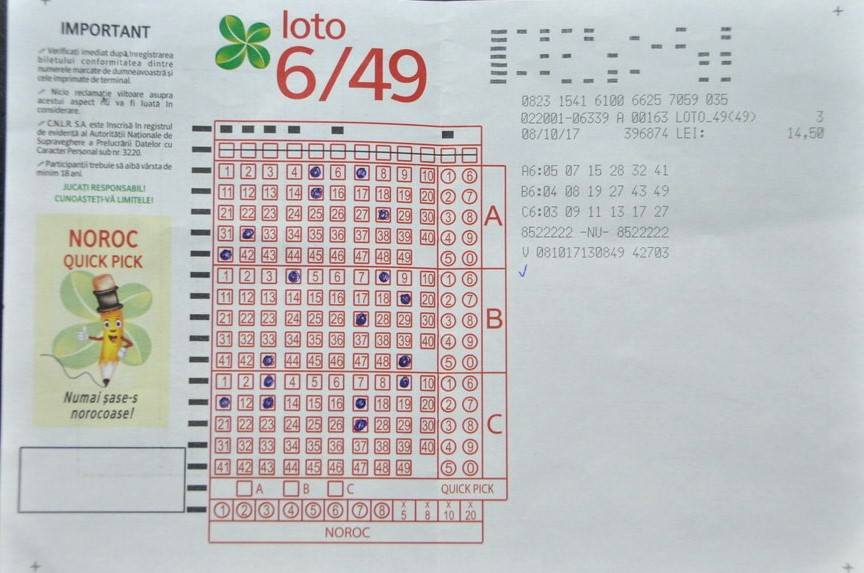 Astazi, 9 octombrie 2017, s-a prezentat la sediul central al Loteriei Române câștigătorul premiului de categoria I la tragerea Loto 6/49 din 8.10.2017, premiul fiind în valoare de 4.604.988,60 lei. Biletul norocos a fost jucat la agenția 22-001 din Iași și a fost completat cu 3 variante simple la Loto 6/49, prețul biletului fiind de 14,50 lei.