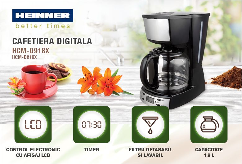 🍀Câștigă o Cafetiera Heinner HCM-D918X, Inox, Display LCD, 1.8L, Argintiu – urmând pașii următori: