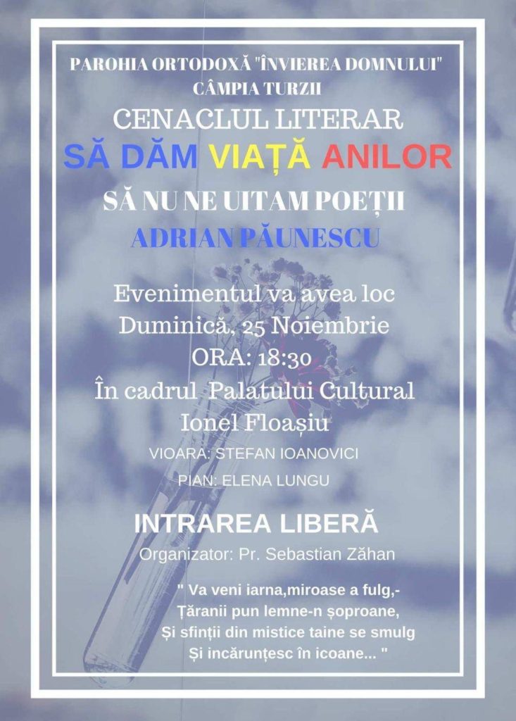 Poeziile marelui Adrian Păunescu vor răsuna în Palatul Cultural Ionel Floașiu, în data de 25 noiembrie, cu începere de la ora 18:30.
