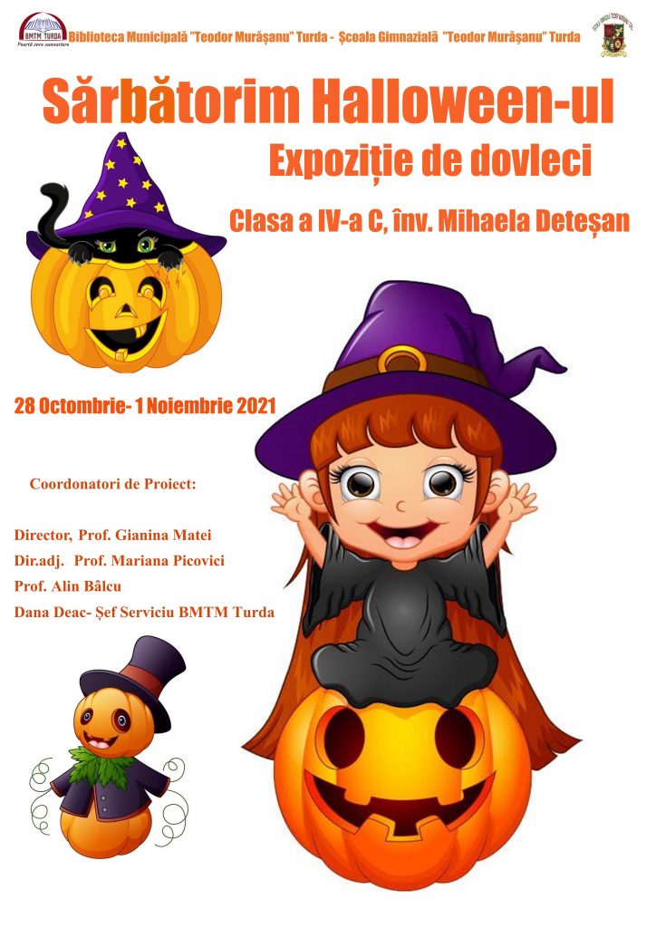 Biblioteca Municipală ”Teodor Murășanu” Turda în parteneriat cu Școala Gimnazială ”Teodor Murășanu” Turda organizează în perioada 28 Octombrie- 1 Noiembrie 2021 expoziția de dovleci ”Sărbătorim Halloween-ul”.