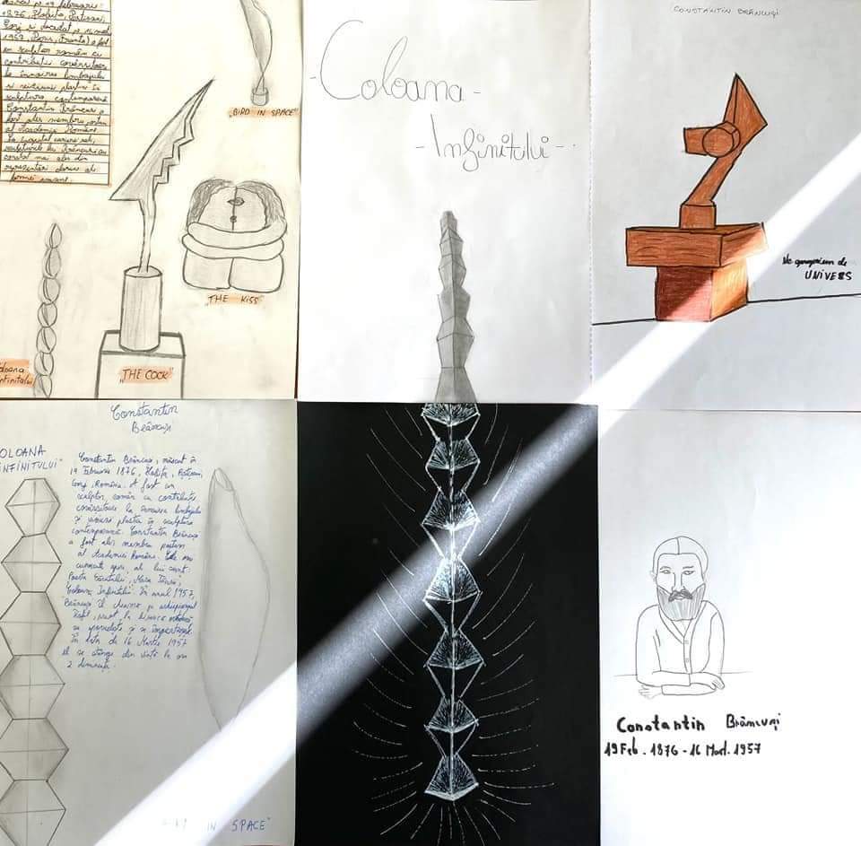 „Cu prilejul evenimentul care a avut loc sâmbătă, 19 februarie, respectiv ,,Ziua Națională Constantin Brâncuși”, elevii claselor V-VIII au realizat lucrări și proiecte artistice. Desenele realizate de copii omagiază capodoperele lui Brâncuși, punând accent și pe valorificarea patrimoniul artistic național. Sculpturile care le-au stârnit cel mai mult curiozitatea fac parte din Ansamblul Sculptural al lui Constantin Brâncuși de la Târgu-Jiu (,,Masa tăcerii”, ,,Coloana Infinitului”, ,,Aleea Scaunelor” și ,,Poarta Sărutului”). Elevii au abordat această temă cu seriozitate, multă implicare și talent.