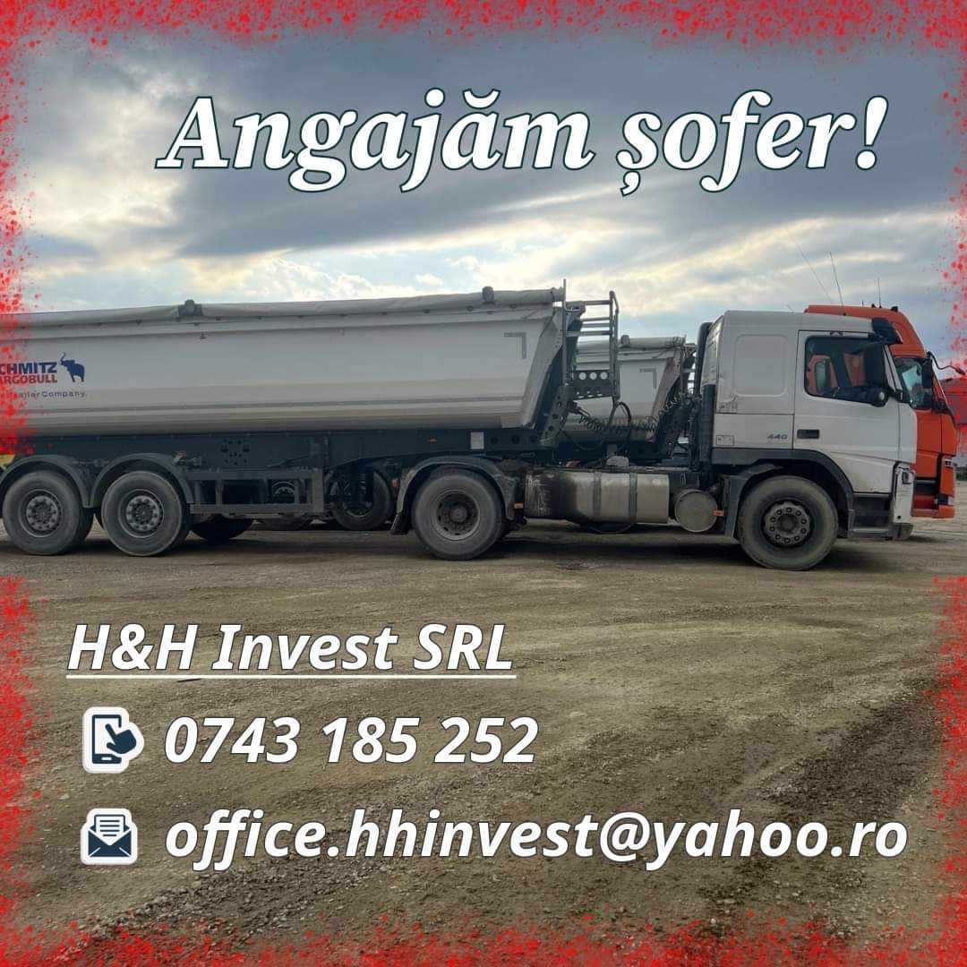 Societatea comercială H&H INVEST SRL angajează șofer profesionist cat. E, cu experiență pe autobasculantă (bilic) – cap tractor cu semiremorcă.