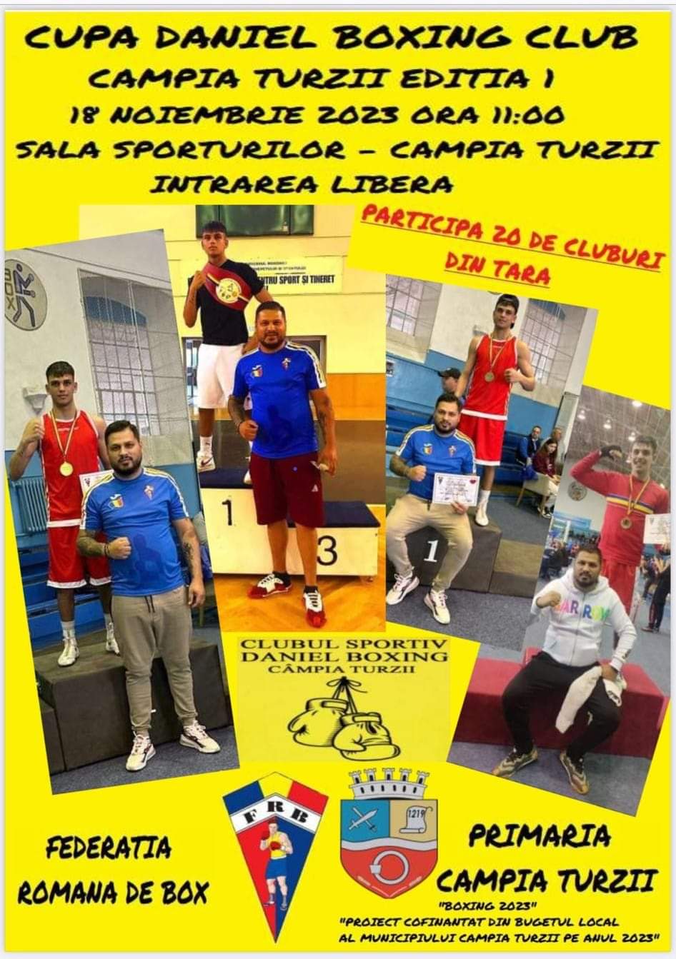Sâmbătă, 18.11.2023, de la orele 11:00, Daniel Boxing Club Câmpia Turzii și Federația Română de Box vă invită în Sala Sporturilor „Ioan Stanatiev”.