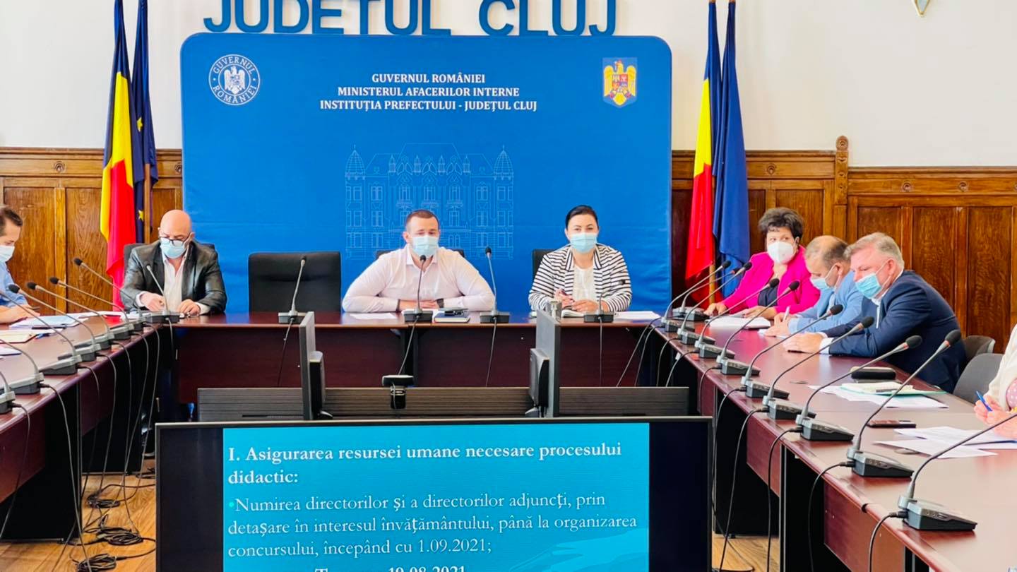 În cadrul ședinței a fost prezentată situația actualizată a demersurilor efectuate de către inspectorul școlar general, doamna Marinela Marc cu privire la stadiul pregătirii unităților de învățământ din județul Cluj, din perspectiva începerii anului școlar 2021-2022, în contextul asigurării resursei umane necesare procesului didactic, cât și al funcționării clădirilor.