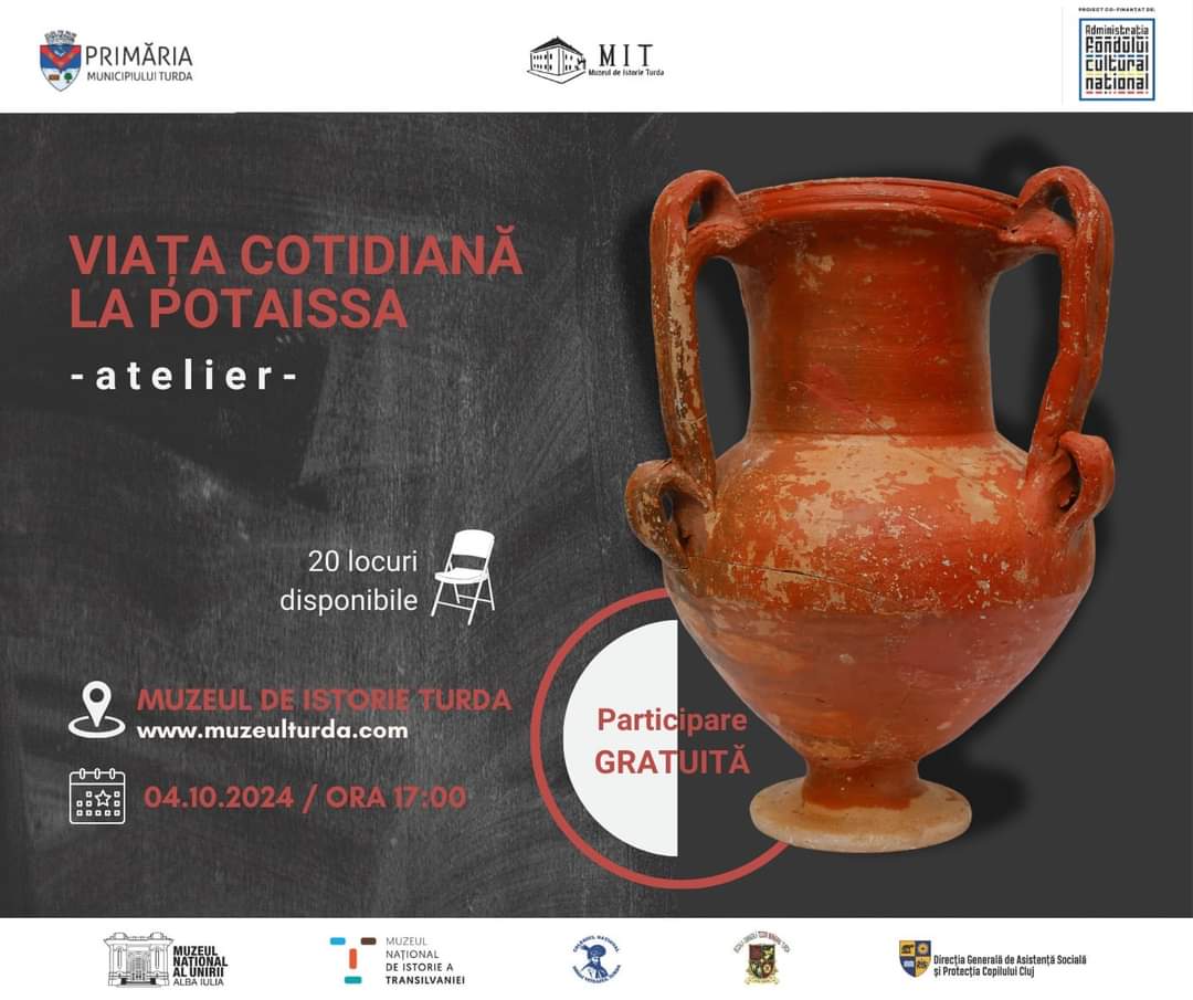 Vă așteptăm vineri, 4 octombrie 2024, începând cu ora 17:00 la atelierul de ceramică ”Viața cotidiană la Potaissa.”