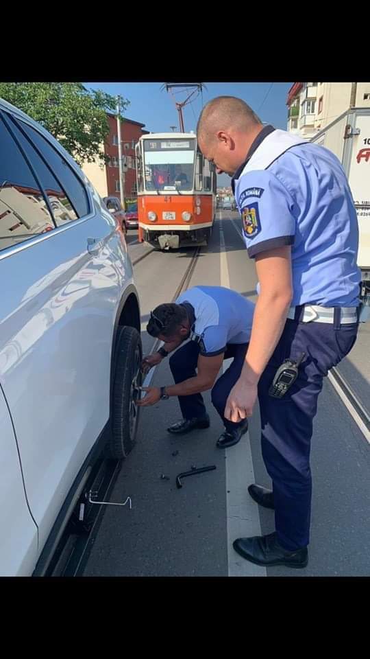 O8:30, oră de vârf, coloană de mașini, linie de tramvai blocată…..Așa a arătat această dimineață pe strada Oașului din Cluj-Napoca… Totul până la intervenția colegilor noștri de la Biroul Rutier care au observat coloana de mașini și au identificat în scurt timp problema: o mașină a rămas pe șinele de tramvai după ce aproape că i s-a desprins roata, prezoanele fiindu-i rupte.