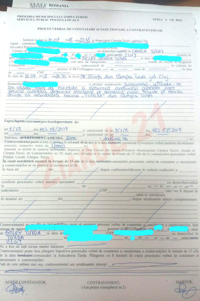 Contactat telefonic, Cozmin Rotar, șeful poliției locale, a declarat pentru Ziarul21, că persoana în cauză, în stare avansată de ebrietate, a adus înjurii clienților de la barul respectiv, a dat muzica tare și a răsturnat pubele din preajma barului. Clienții au sunat la numărul 112 iar la fața locului s-au deplasat un echipaj de la Poliția Locală împreună cu un echipaj de la Poliția Națională. Persoana în stare de ebrietate a fost dusă la secție pentru identificare și declarații și a fost amendată cu suma de 2000 lei pentru tulburarea liniștii publice.