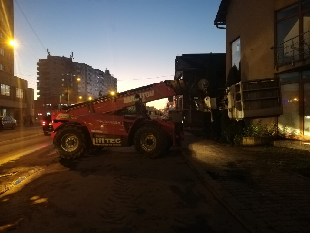„În această seară, (25.11.2019) venind de la Kaufland, vis-a-vis de sala de jocuri Baum Games, acest utilaj era parcat atât pe trotuar cât și în parcare, în așa fel încât pietonii nu mai aveau posibilitatea să treacă prin zonă. Pentru că nu aveam pe unde să trec, datorită faptului că utilajul bloca accesul pietonilor, am solicitat foarte frumos, persoanei care manevra utilajul să îl mute puțin cât timp nu îl folosește, pentru ca pietonii nu au pe unde sa mai circule.