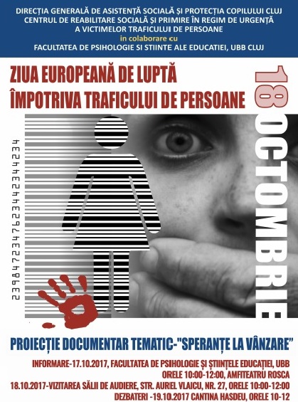 Direcţia Generală de Asistenţă Socială şi Protecţia Copilului Cluj, instituție de interes județean aflată în subordinea Consiliului Județean Cluj, marchează, prin Centrul de Reabilitare Socială şi Primire în Regim de Urgenţă a Victimelor Traficului de Persoane, Ziua Europeană de Luptă Împotriva Traficului de Persoane. Evenimentul constă în desfăşurarea unor activităţi de sensibilizare în mediul universitar și şcolar, care au ca scop informarea şi educarea tinerilor şi copiilor atât în ceea ce priveşte traficul de persoane cât şi consecinţele negative ale acestui fenomen, subliniind importanța colaborării interinstituționale în vederea prevenirii și combaterii traficului de persoane.
