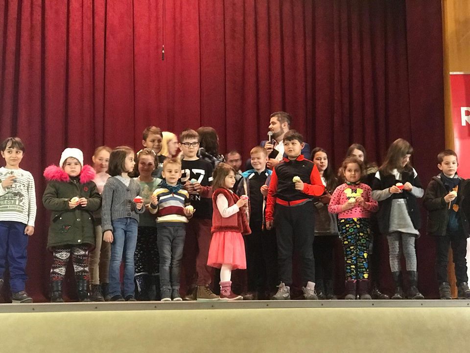 Seara a fost încununată de copiii aflați la concert, care au cântat o colindă și drept recompensă au primit prăjiturele, cărți de desenat și decorațiuni de brad, din partea sponsorilor evenimentului!