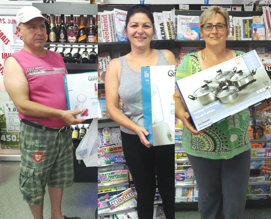 O nouă lună, noi câștigători la Tabaco Câmpia Turzii, unde trei clienți ai primei tutugerii din Câmpia Turzii au caștigat: un aparat de preparat înnghețata, un set de oale din inox, și un blender multifuncțional.