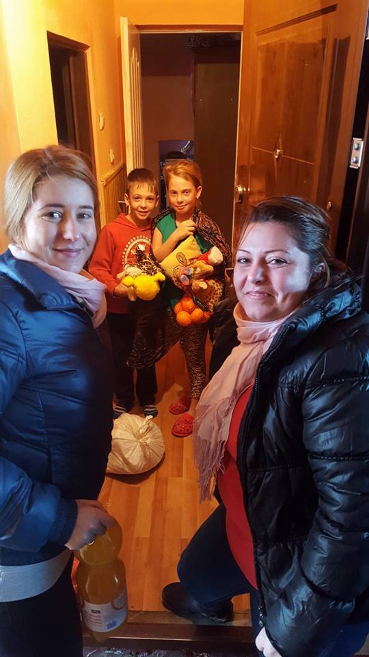 Roxana și Septi au luat legătura cu un reprezentant al asisteneței sociale din Unirea, județul Alba, și împreună cu acesta au pornit, sâmbătă, 16 decembrie, în ajutorul familiilor cu venituri mici, de etnie rromă sau cu dizabilități din Unirea, mai apoi comuna Bogata și comuna Mihai Viteazu, unde au bătut din poartă în poartă și le-au dăruit celor aflați în nevoie pungi cu alimente, dulciuri și jucării pentru cei mici.