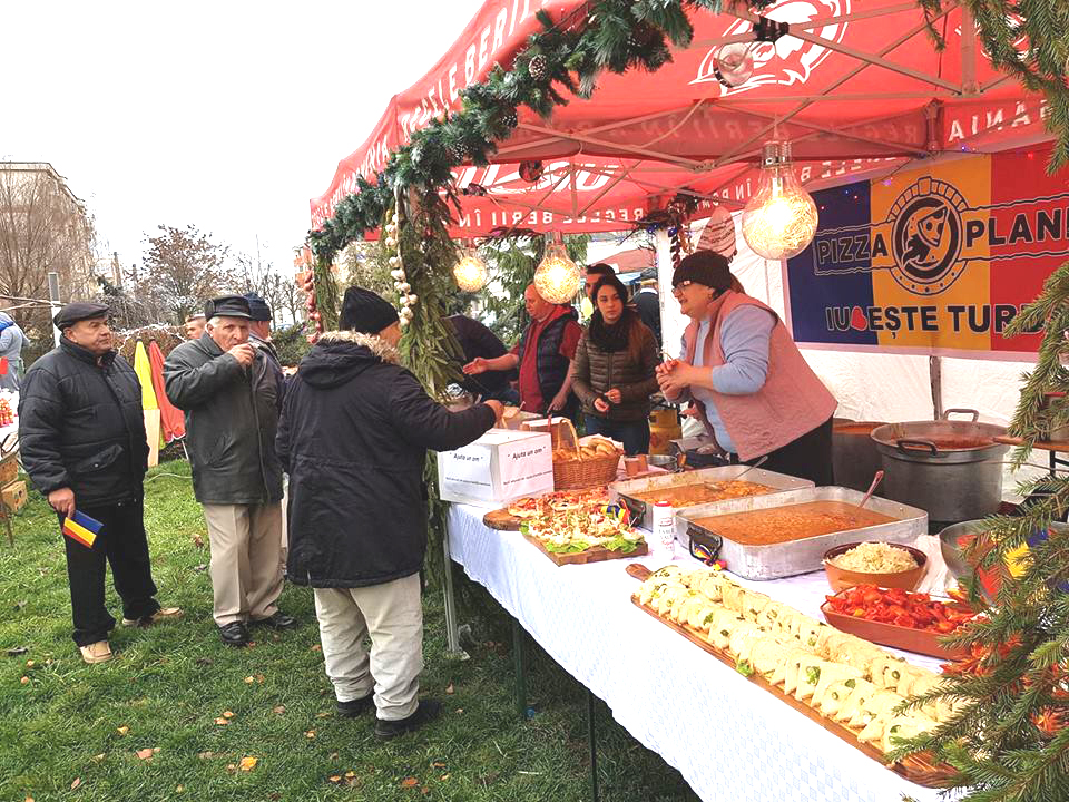 Astăzi, 1 Decembrie 2017, Pizza Planet a făcut o minunată acţiune umanitară. A organizat un stand cu produse ale pizzeriei pe care l-a aşezat în mijlocul târgului şi i-a poftit pe turdeni să mănânce GRATIS din toate mâncărurile aşezate pe tarabă.