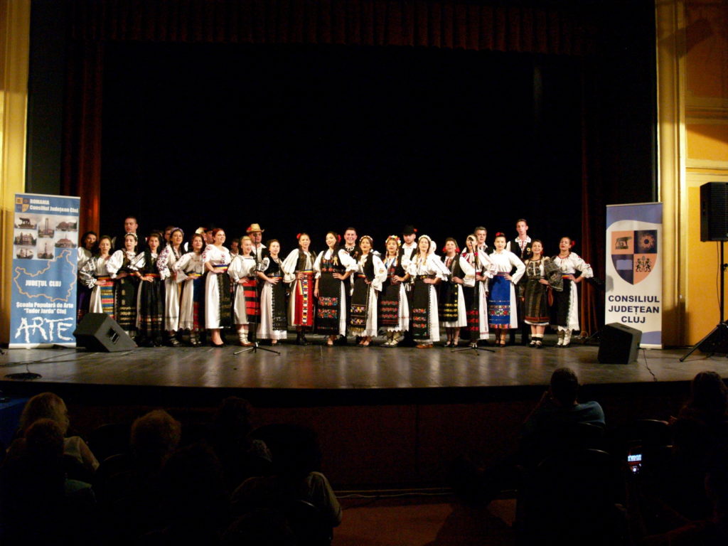 Iar spectacolul care a urmat, imediat după încheierea taberei, la Teatrul de Stat “Aureliu Manea”, din Turda, a reprezentat o demonstraţie de forţă şi măiestrie a celor 48 de artişti în devenire, de la ambele secţii muzicale, acompaniaţi excelent de experţii, corepetitorii sau instrumentiştii formaţiilor şi tarafului Şcolii de Arte! Turdenii, avizi de cultură, au umplut până la refuz sala şi au aplaudat îndelung aproape fiecare moment de muzică uşoară sau populară oferit de tinerii artişti în devenire de la Cluj-Napoca, mulţi dintre ei rivalizând deja cu consacraţii. Spectacolul a fost prezentat de actorul Petre Băcioiu, expertul clasei de actorie şi retorică a şcolii şi de preotul Sebastian Zăhan, coordonatorul secţiei externe de iniţiere corală Turda, din cadrul instituţiei clujene şi al Corului “Armonia”, prilej cu care spectatorii au urmărit şi un reuşit program, susţinut de coriştii turdeni, cărora acesta se dedică. Totodată, un alt element inedit a adus o notă de prestanţă serii muzicale de la teatrul turdean: expoziţia “Lemn á la Cluj”, deschisă în foaierul aşezământului cultural, vernisată de d-na Felicia Răcean, coordonatorul secţiilor externe de arte vizuale Turda şi Câmpia Turzii. Reamintim, expoziţia reprezintă rodul artistic al cursanţilor din Turda şi CâmpiaTurzii, realizat cu prilejul taberei de documentare organizate de către Şcoala de Arte în judeţul Cluj, în perioada 7 -10 iulie 2018”.