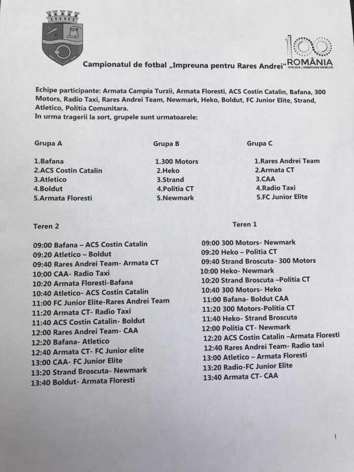 Grupele și programul meciurilor pentru evenimentul caritabil “Împreuna pentru Rares Andrei” din 16 iunie de la Complexul Broscuța.