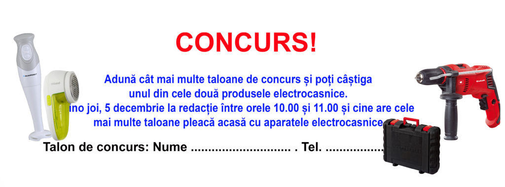 Așadar joi, 5 decembrie, vom acorda 3 premii: o bormașină, un blender de mână și un aparat de adunat scamele.