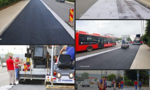 Pe strada Calea Victoriei se asfaltează încă o bandă de mers cu stratul de uzură, iar pe strada Ștefan cel Mare continuă lucrările la sensul giratoriu de la intersecția cu strada 22 Decembrie.