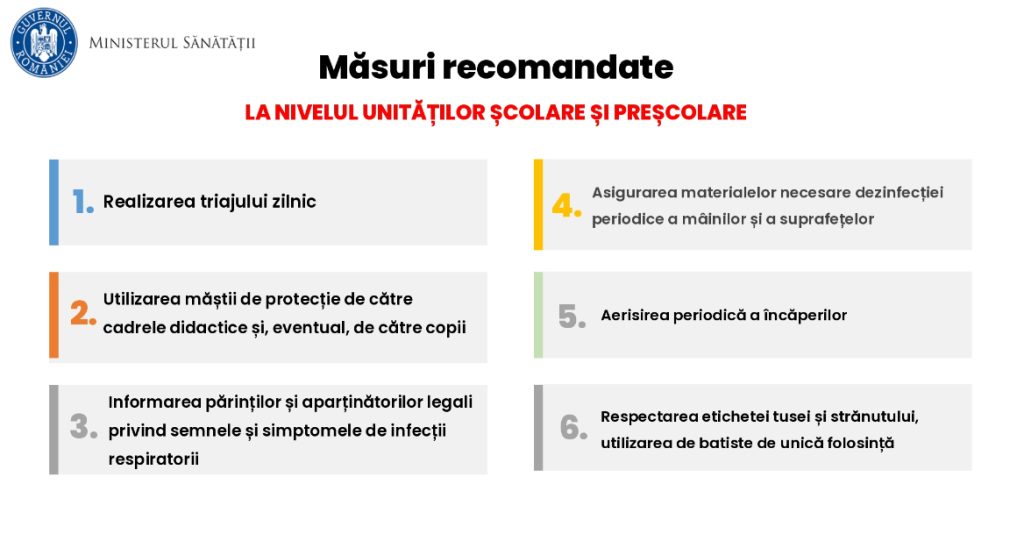 MĂSURI RECOMANDATE LA NIVELUL Unităților ȘCOLARE și PREȘCOLARE