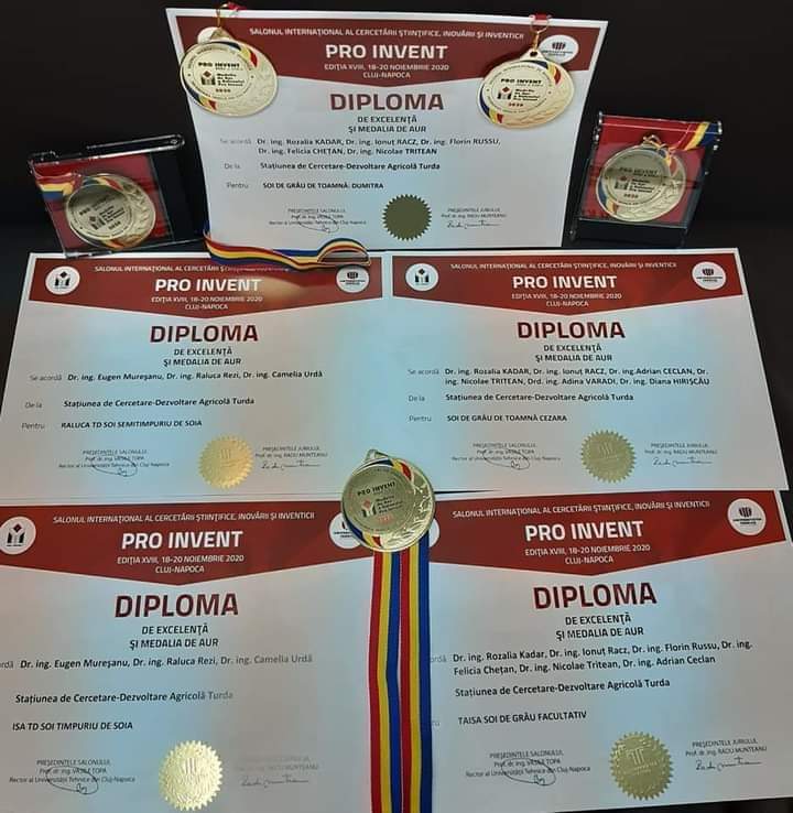 Cinci medalii de aur și cinci diplome de excelență pentru SCDA Turda la Salonul Internațional al Cercetării Stiințifice, Inovarii și Inventicii PRO INVENT 2020.