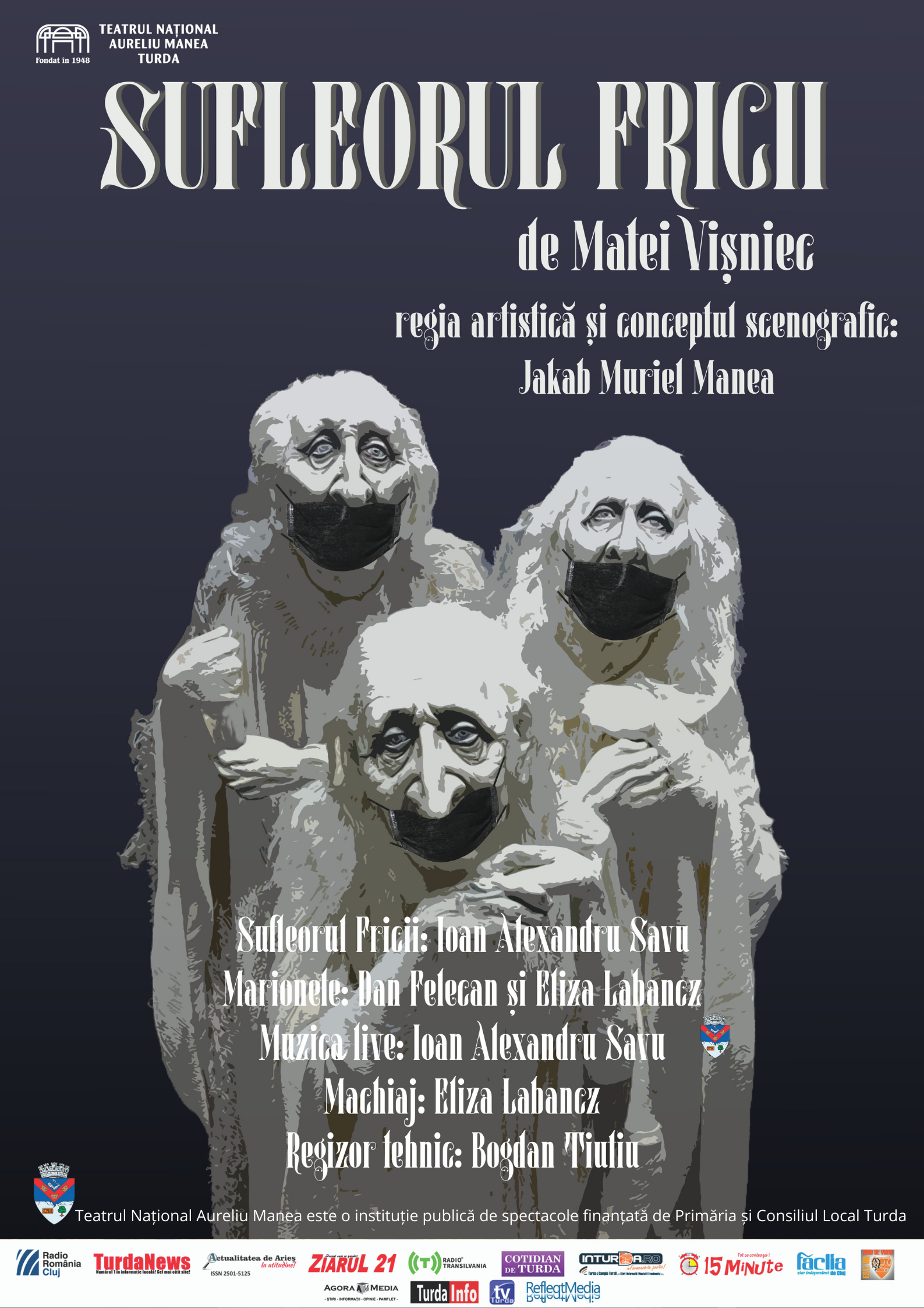 Printre spectacolele care trebuiau să aibă premiera în luna martie și care din păcate am fost nevoiți să le reprogramăm se numără și spectacolul „Sufleorul fricii”, de Matei Vișniec, regia Jakab Muriel Manea. Spectacolul se va juca fără public, în data de 27.03.2021.