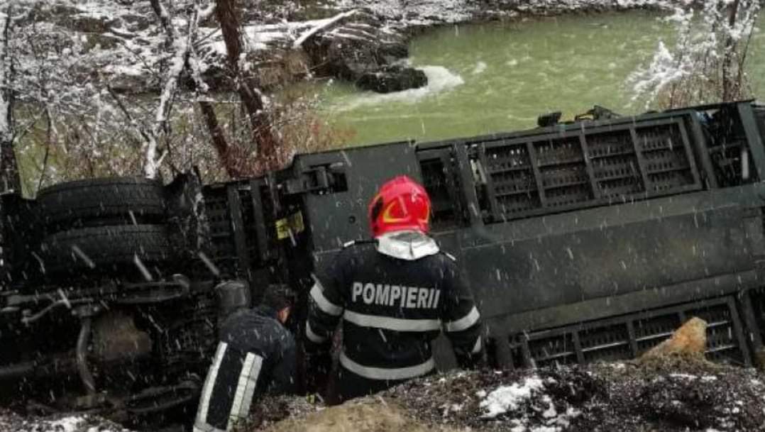 Şoferul unui autotren a fost grav rănit într-un accident produs vineri pe DN 75, după ce TIR-ul pe care îl conducea a ieşit de pe carosabil, pe raza localităţii Brăzeşti, în Munţii Apuseni, şi s-a răsturnat pe malul râului Arieş.