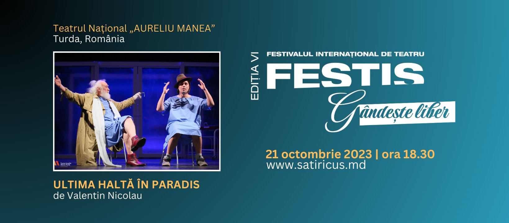 După ce la începutul lunii octombrie, echipa TNAMT a impresionat publicul din Atena, în acest weekend teatrul turdean va juca în deplasare în Republica Moldova pentru a le cuceri inimile spectatorilor din Chișinău cu comedia Ultima Haltă în Paradis, regia Andrei Mihalacheîn cadrul Festivalului Internațional de Teatru FESTIS ediția VI,festival organizat de Teatrul Național SatiricusI.L. Caragiale. Timp de o lună la Chișinău vor urca pe scenă teatre mari din România și nu numai. Printre ele se numără Teatrul Național „Radu Stanca” din Sibiu,Teatrul Național „Mihai Eminescu” Chișinău, Teatrul „Matei Vișniec” din Suceava, Teatrul „Stela Popescu” din București iar din străinătate invitat este Teatrul Dramatic de Stat din Akhaltsikhe, Georgia.