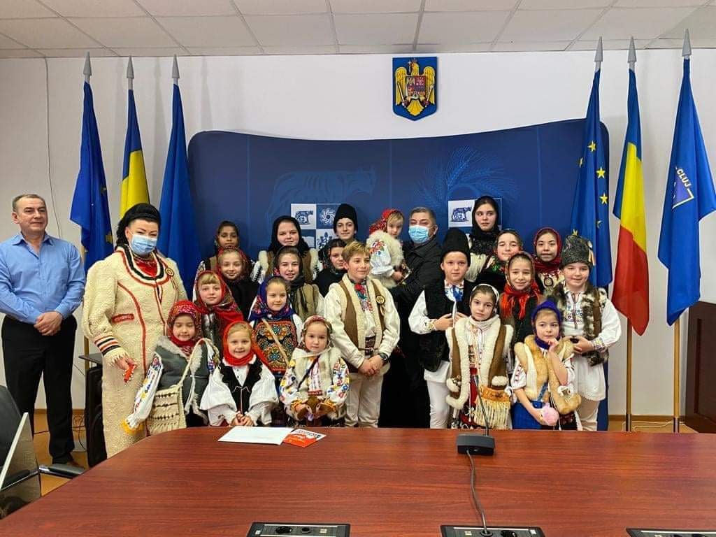 Copiii și tinerii clujeni participanți în cadrul proiectului cultural-educativ ,,Tradiții clujene la colindat”, ce face parte din proiectul amplu „Educație prin cultură, însoțiți de managerul Centrului Județean pentru Conservarea și Promovarea Culturii Tradiționale Cluj, Adriana Irimieș, l-au colindat pe președintele Consiliului Județean Cluj, domnul Alin Țișe, dar și pe consilierii județeni, în deschiderea Ședinței ordinare a Consiliului Județean Cluj.