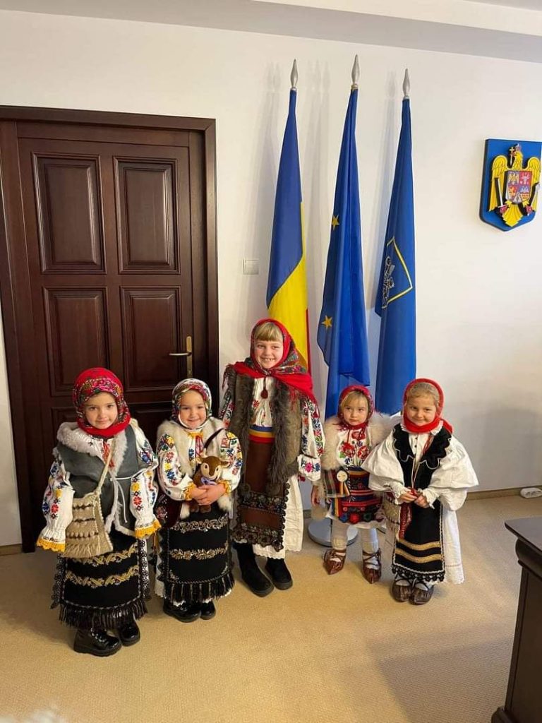 La final, colindătorii, grupul de copii „Muguri de Folclor”, coordonați de prof. Alexandru Filip, au primit daruri din partea președintelui Consiliului Județean Cluj și au fost invitați în biroul președintelui.