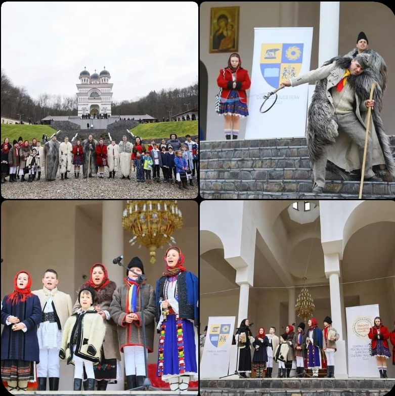 Clujenii prezenți duminică, 2 ianuarie 2022, în curtea Mănăstirii „Acoperământul Maicii Domnului” din Florești s-au bucurat de mai multe colinde tradiționale și obiceiuri de Anul Nou.