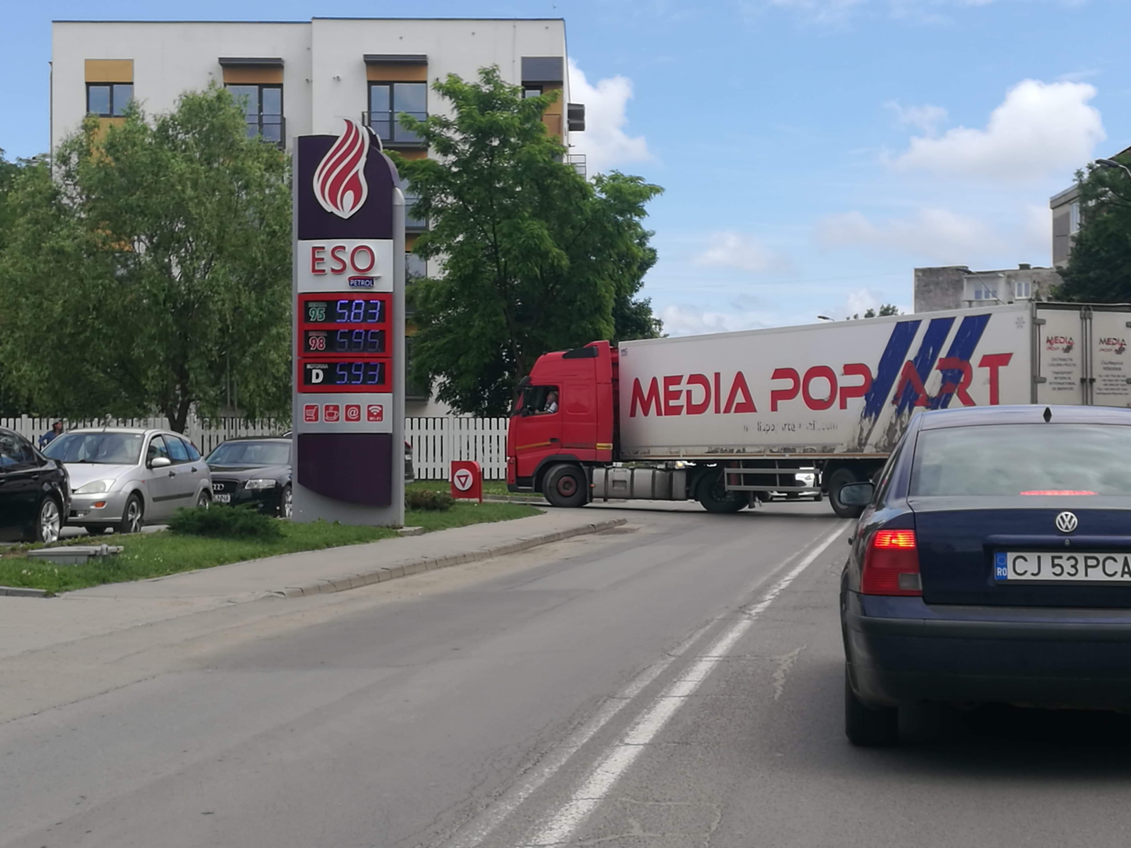 Vineri, 31 Mai, în jurul orei 12 30 traficul pe Calea Victoriei a fost blocat din cauza unui tir. Șoferul a încercat sa între în benzinăria Eso, ceea ce a și reușit după mai bine de 10 minute de manevre, peste linia continuă ce separă sensurile de mers. Timp de 10-15 minute traficul a fost blocat, timp în care tirul a făcut manevre pentru a întra în benzinărie. Șoferii au claxonat și au fost iritați în toată această perioadă.
