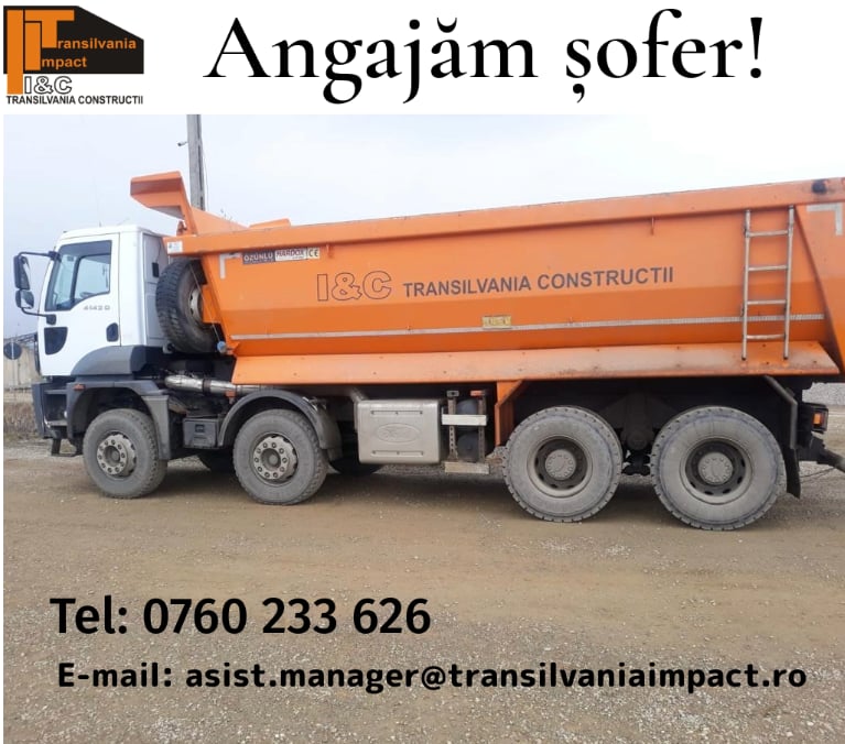 Societatea I&C Transilvania Constructii SRL angajează șofer profesionist cu experiență pe autobasculantă 8×4.