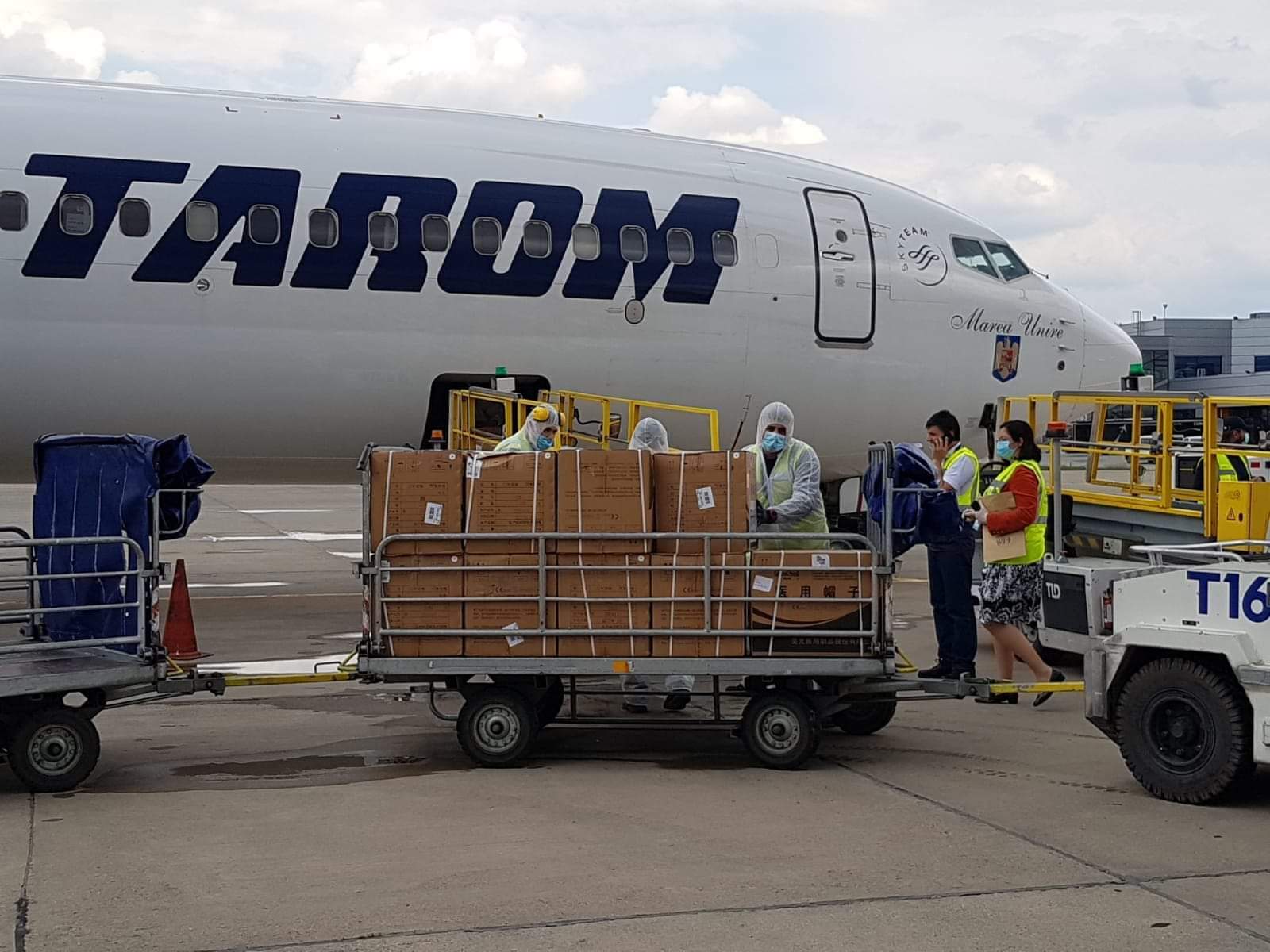 În această după-amiază a aterizat pe Aeroportul Internațional „Avram Iancu” din Cluj-Napoca, o aeronavă Boeing 737-800, operată de compania Tarom, care a transportat 75 mc de echipamente de protecție pentru spitalele din județul Cluj.
