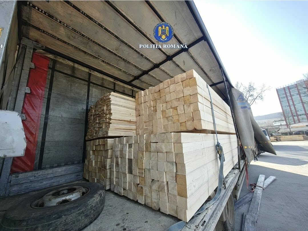 În urma controalelor efectuate, polițiștii au identificat, în incinta unui depozit situat pe strada Calea Baciului, o autoutilitară, încărcată cu cherestea de rășinoase.