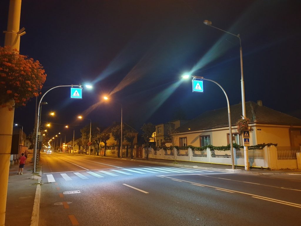 Sistemul de iluminare inteligentă constă în amplasarea unor stâlpi de iluminat care se prelungesc deasupra carosabilului, cu corpuri de iluminat LED. Pe lângă corpurile de iluminat cu LED, pe acești stâlpi sunt montate și indicatoare rutiere “Trecere de pietoni” cu iluminare interioară, pentru o semnalizare mai bună a acestora.