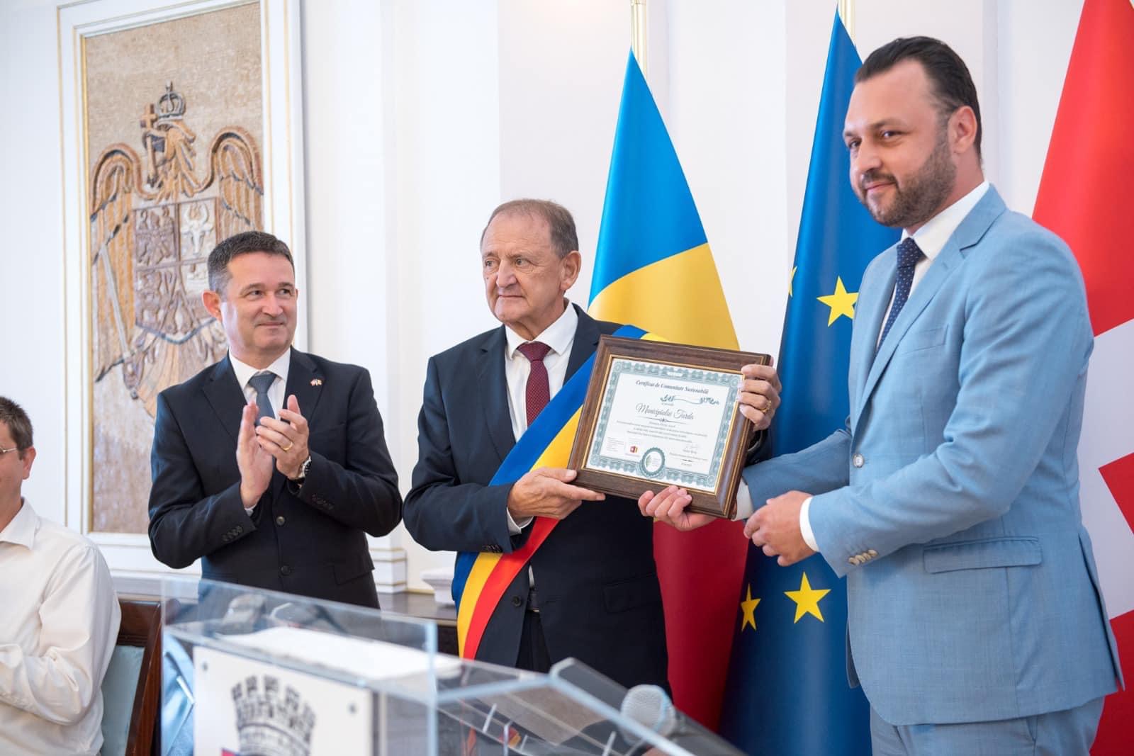 Turda este a treia municipalitate din Transilvania care primește acest titlu, alături de Alba Iulia și Cluj Napoca, iar la nivel național este a 5-a municipalitate declarată comunitate sustenabilă confirmând eforturile actualei administrații pentru o dezvoltare și un turism durabil.