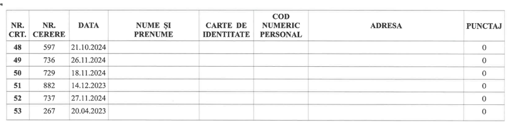 7 dosare respinse (punctaj 0)