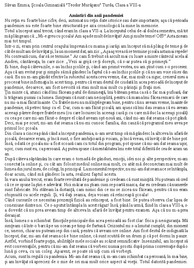 Premiul III-Porcilă Ovidiu (Cls a VIII-a C Școala Gimnazială ”Teodor Murășanu” Turda)