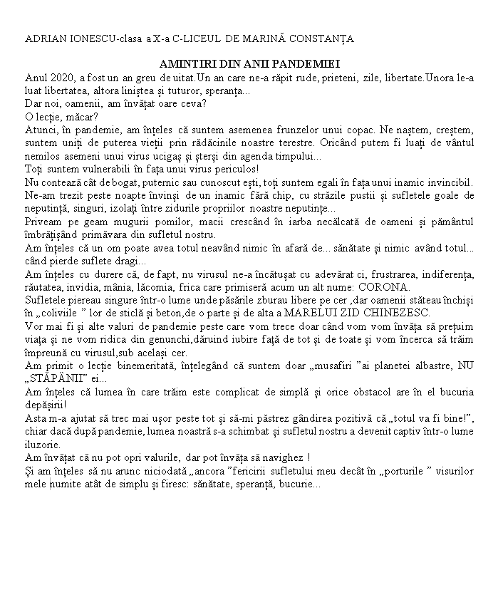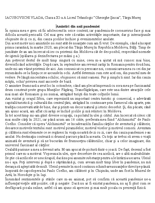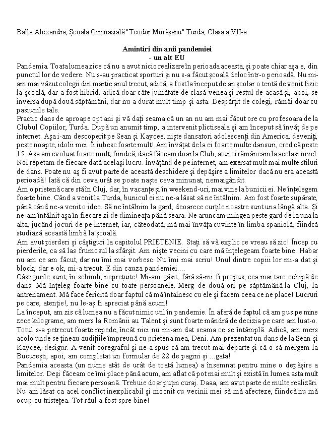 Premiul III-Porcilă Ovidiu (Cls a VIII-a C Școala Gimnazială ”Teodor Murășanu” Turda)