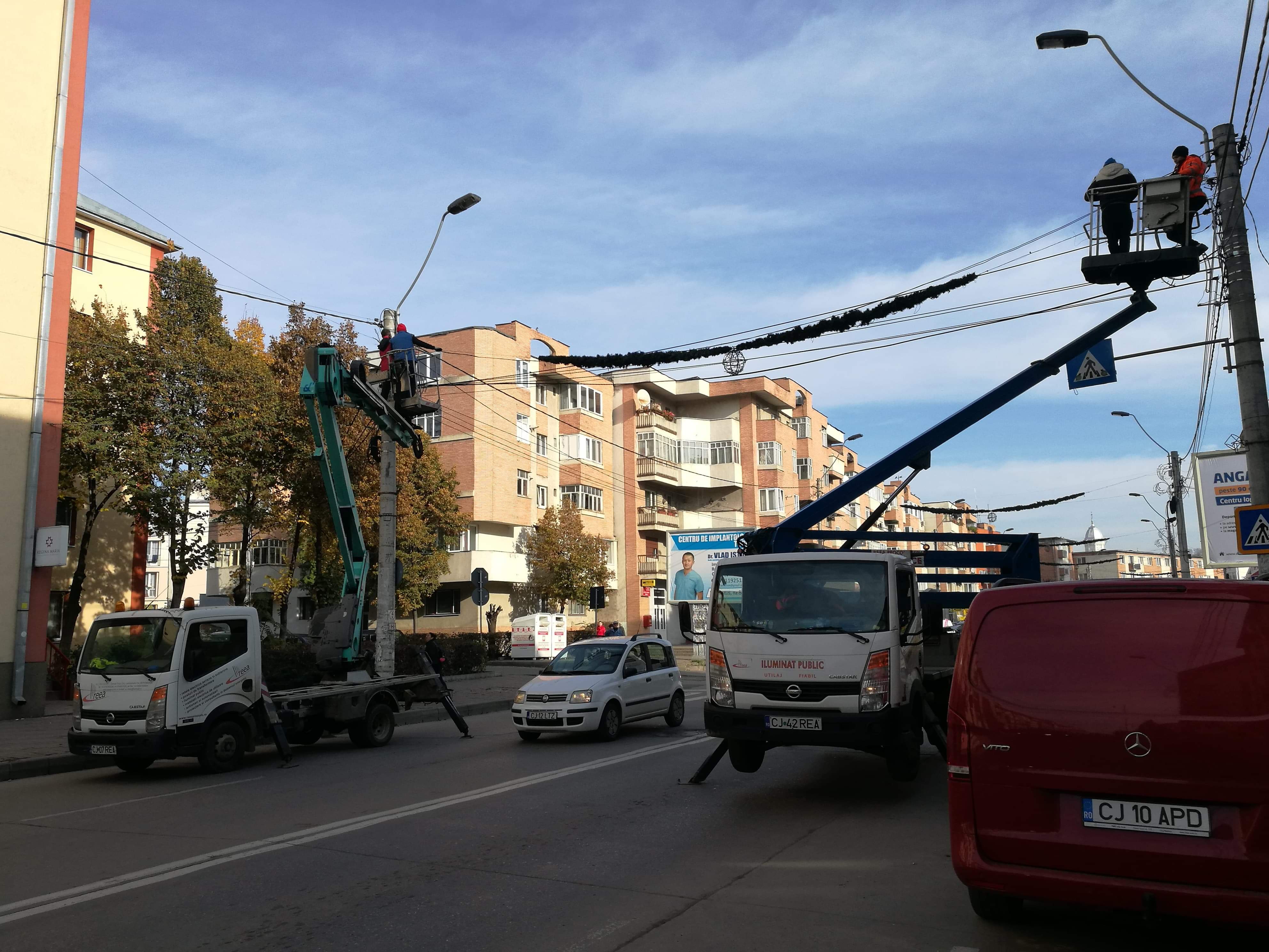 Turda se pregătește de sărbătoare! Marți dimineața au fost zăriți pe străzile orașului, echipe care aparțin companiei care se ocupa de admistrarea iluminatului public stradal. Aceștia au început sa monteze deja decorațiuni luminoase pe stâlpii din municipiu. Aceștia au încurcat puțin circulația dar au fost ajutați de un echipaj de la poliția locală care au dirijat circulația. Trebuie să ne așteptăm și în următoarele zile la astfel de acțiuni, orașul trebuie sa fie pregătit pentru sărbătorile de iarna cum se cuvine. Bine decorat, iar cu puțin noroc vom avea parte și de puțină zăpadă.
