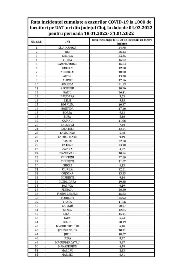 Actualitate Turda și Câmpia Turzii au sărit de 16 la mia de locuitori rata de incidență ziarul21.ro 4 februarie 2022, 21:46 Share Tweet Share Share Email Comments Rata incidenței cumulate a cazurilor COVID-19 la 1000 de locuitori pe UAT-uri din județul Cluj, la data de 04.02.2022 pentru perioada 18.01.2022- 31.01.2022. Related Items:campia turzii, Coronavirus, Featured, turda, Turda și Câmpia Turzii au sărit de 16 la mia de locuitori rata de incidență, ziarul 21 Share Tweet Share Share Email Recommended for you Cursanți ai Facultății de Comandă și Stat Major, în vizită la Baza 71 Aeriană din Câmpia Turzii Continuă înscrierile pentru concursul de biciclete „Surprizele Iepurașului” – 5 aprilie 2026 𝐒𝐓𝐎𝐏 𝐚𝐜𝐜𝐢𝐝𝐞𝐧𝐭𝐞𝐥𝐨𝐫 𝐫𝐮𝐭𝐢𝐞𝐫𝐞! 𝐕𝐈𝐀𝐓̦𝐀 𝐚𝐫𝐞 𝐩𝐫𝐢𝐨𝐫𝐢𝐭𝐚𝐭𝐞! Click to comment Leave a Reply Anulează răspunsulComentariile trebuie să respecte regulile de utilizare.Adresa ta de email nu va fi publicată. Câmpurile necesare sunt marcate cu *Comentariu * Nume * Email * Δ Acest site folosește Akismet pentru a reduce spamul. Află cum sunt procesate datele comentariilor tale.