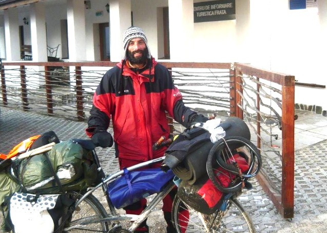 Echipat pentru drum lung și cu bicicleta încărcată cu bagaje, acesta a parcurs mii de kilometri, alegând un mod de călătorie ecologic și sănătos.